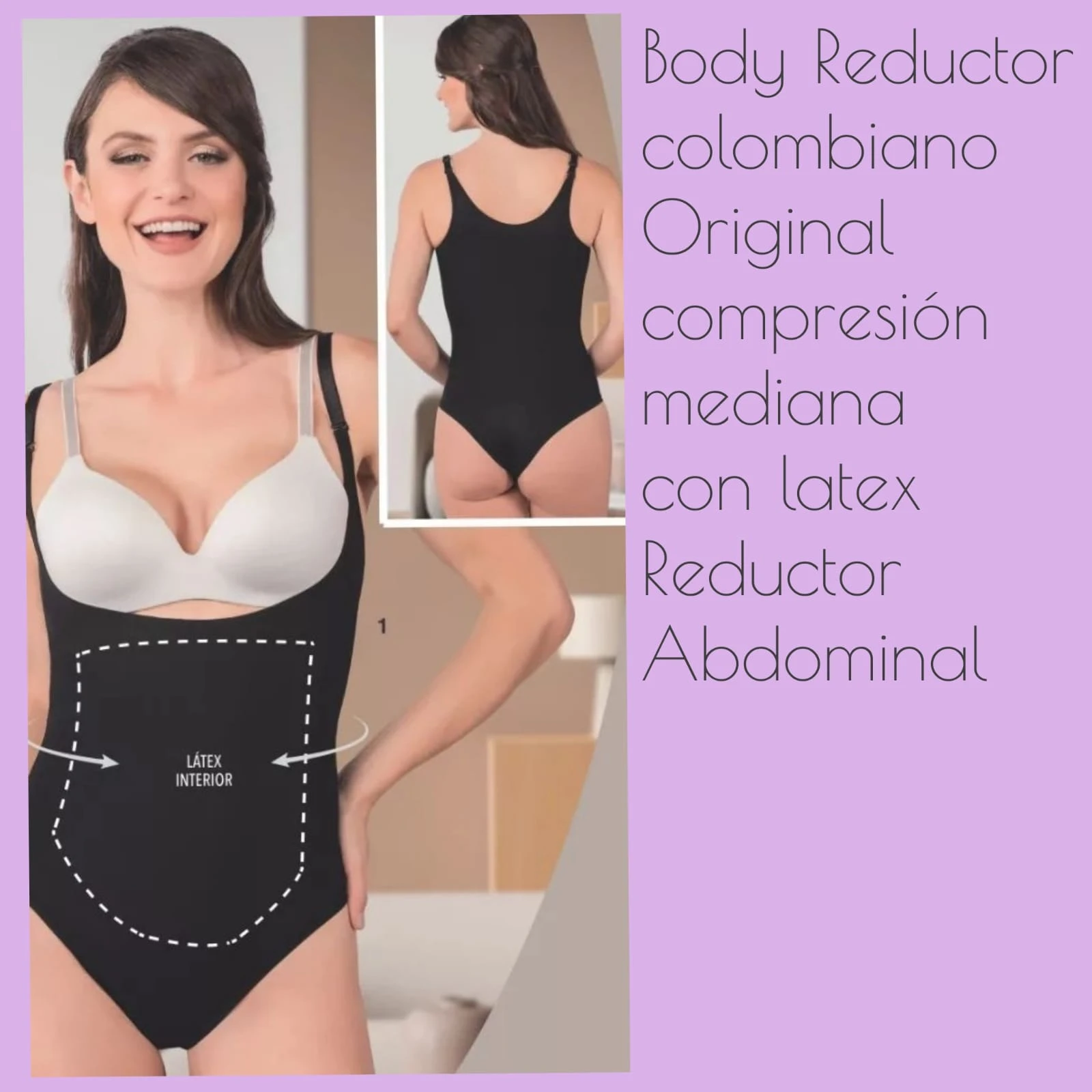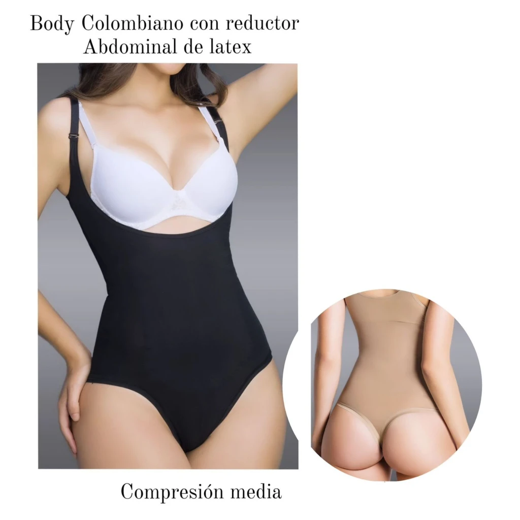 El body modelador colombiano de compresión media tiene látex abdominal super reductor que te permite reducir de manera progresiva el exceso abdominal y pegar la piel al musculo, es de uso apto de 12 horas puedes ir reduciendo mientras duermes, el body te permite una perfecta irrigación  tiene breteles regulables broches íntimos, el complemento después del uso de una faja postquirúrgica de alta compresión.