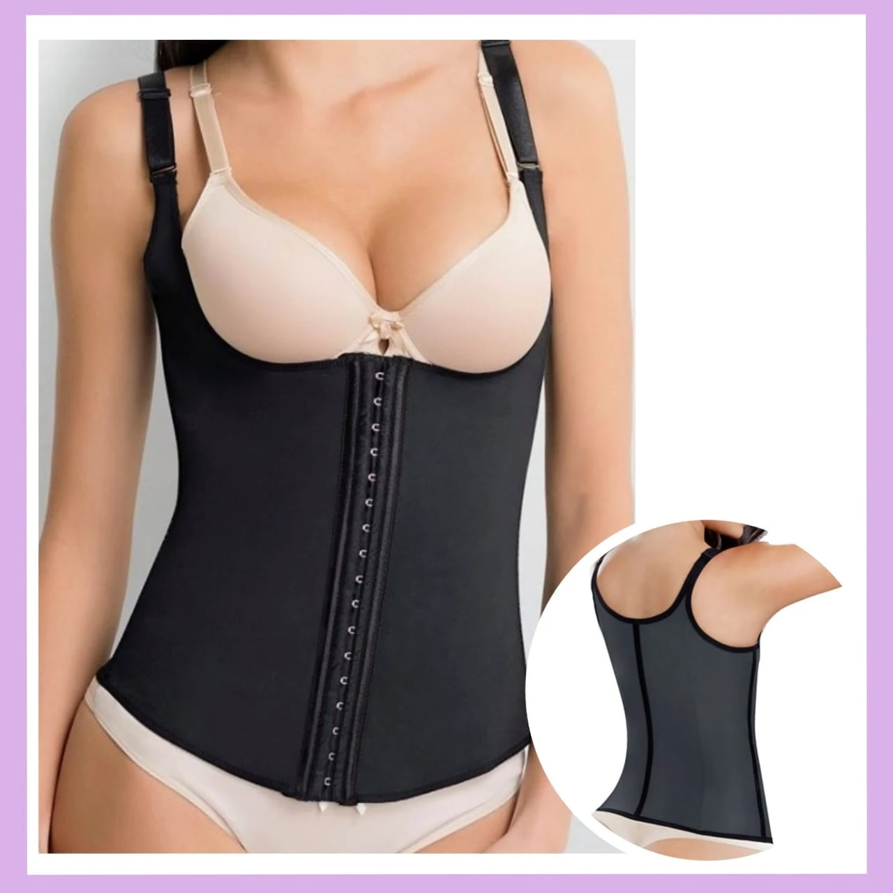 Faja chaleco de látex revestido original con bretel regulables, 3 hileras de broches discretos, modelo segunda piel.
