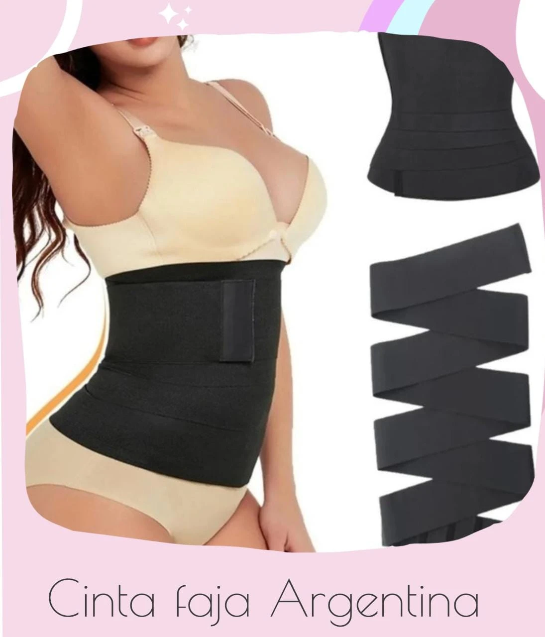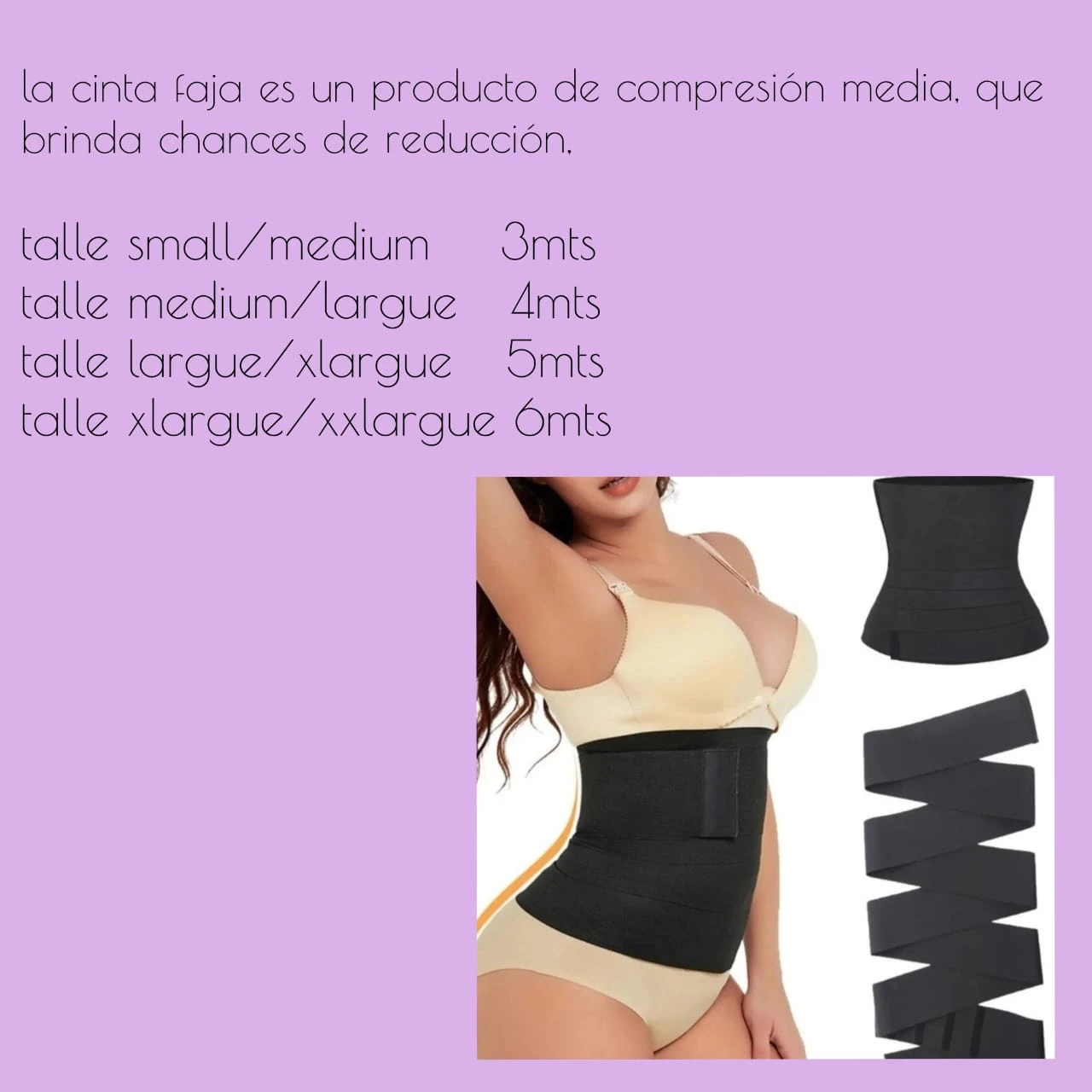 Cinta faja de 3 mts, 4mts Y 5mts con elástico marcerizado, apto s al xl es de industria Argentina.