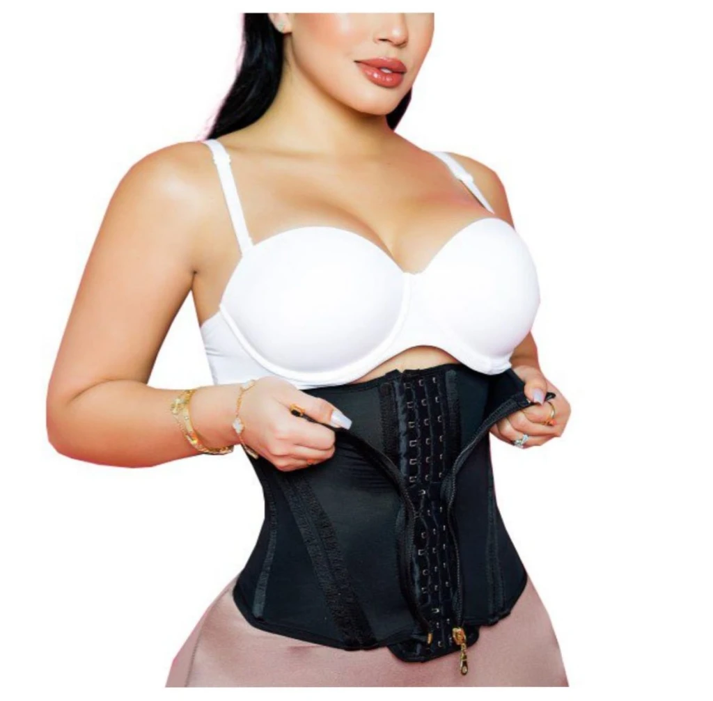 La mejor faja colombiana confeccionada con 11 ballenas y 3 ajustes frontales con cierre externo confeccionada en powernet quirúrgico Colombiano.