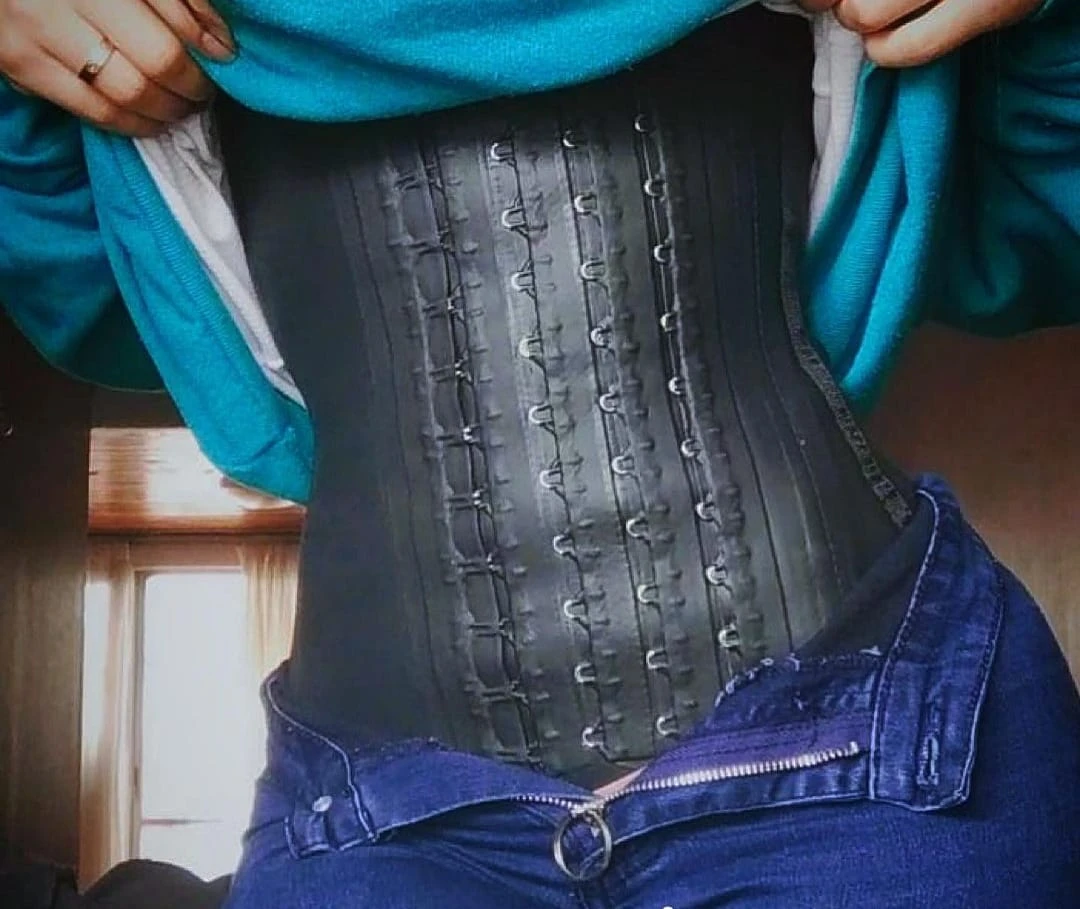 Nuestra faja original Colombiana cintura de avispa de látex expuesto premium con 4 ballenas de acero Flex tejido, interno de algodón fibracover única en Argentina con 4 hileras de broches para ajuste de reducción.