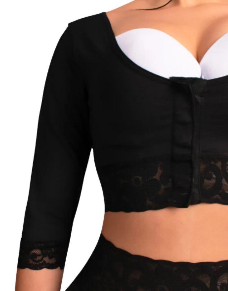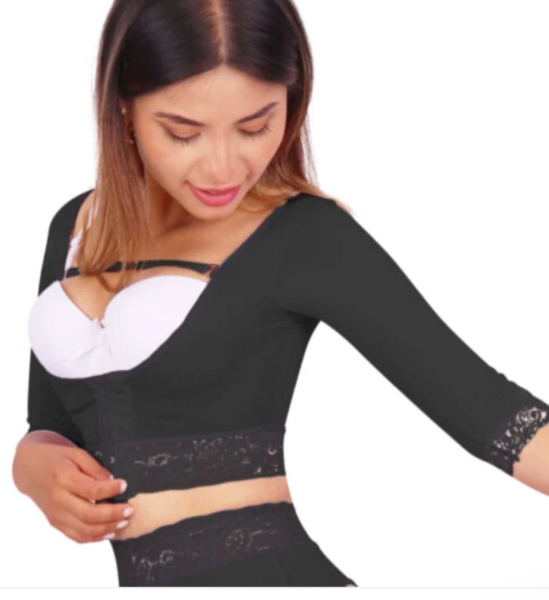 Confeccionado en suplex brasile tiene broches frontales y es de alta compresión complementalo con el uso de faja enteriza.